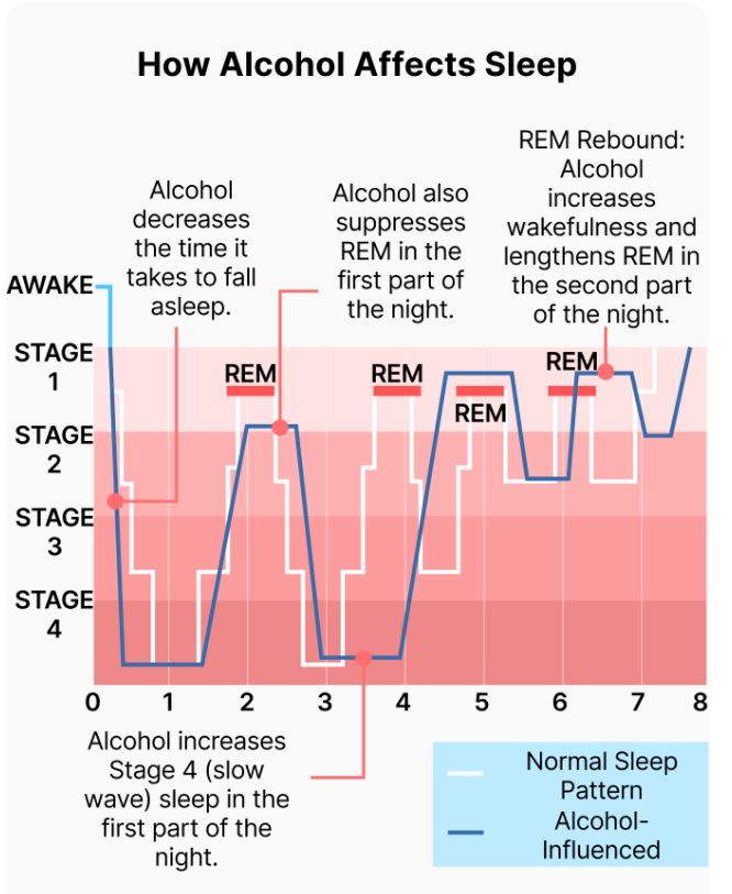 Alcohol tends to help you fall asleep faster, but it also changes what happens after you’re actually asleep: